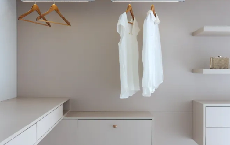 Móveis planejados podem incluir armários compactos que oferecem armazenamento sem ocupar muito espaço.